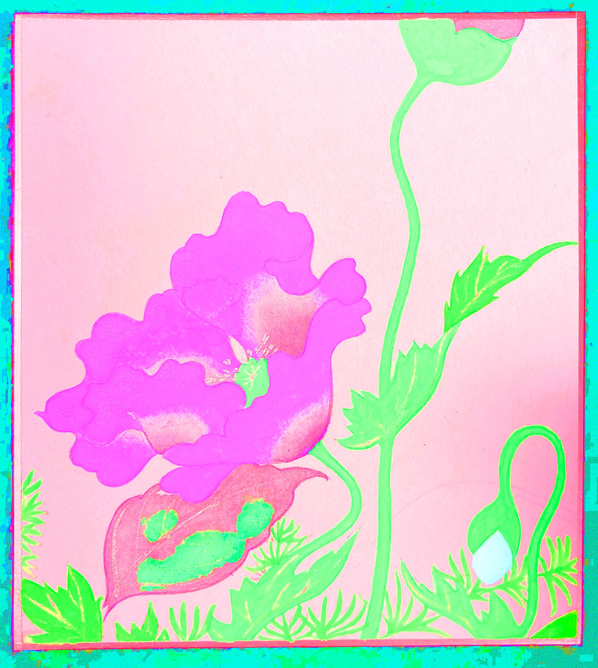 酒井抱一「四季花鳥図巻」より芥子の模写から再構成