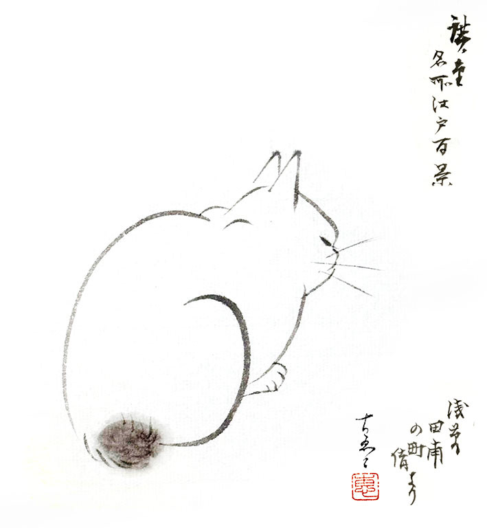 歌川広重 百猫画譜・名所江戸百景 浅草田圃酉の町詣より アートサロンにてゆる模写 ワークショップ